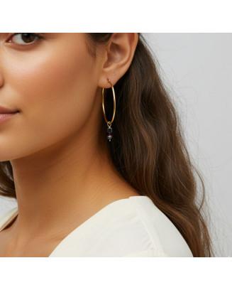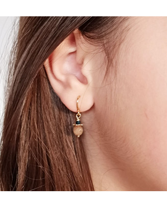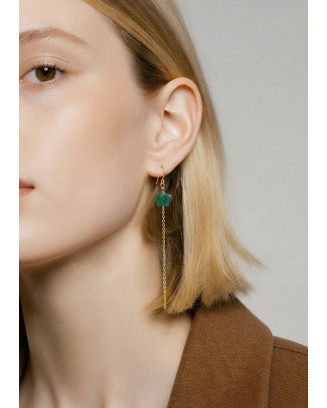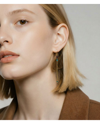 Pendientes con piezas doradas caladas a mano y bañada en oro 18 Kt. con cadena y piedras naturales intercaladas de 0,6 cm