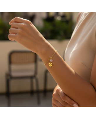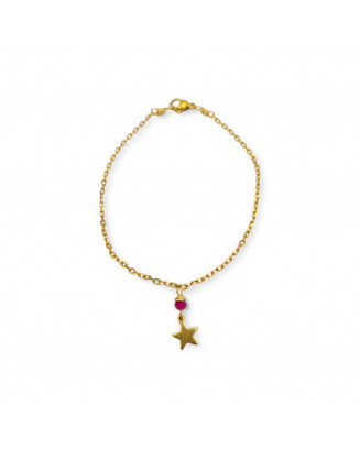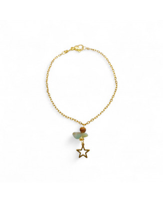 Pulsera con cadena de eslabones de acero inoxidable y pieza hecha a mano en forma de pieza de puzzle, bañado en oro 18 Kt.